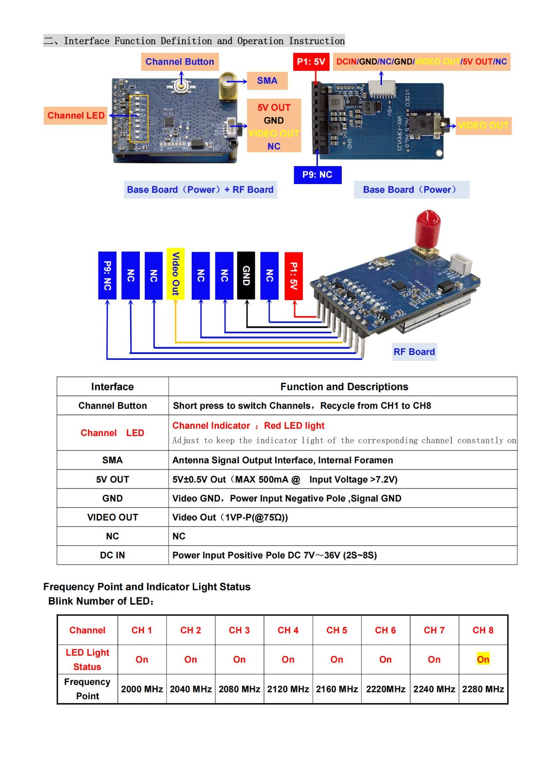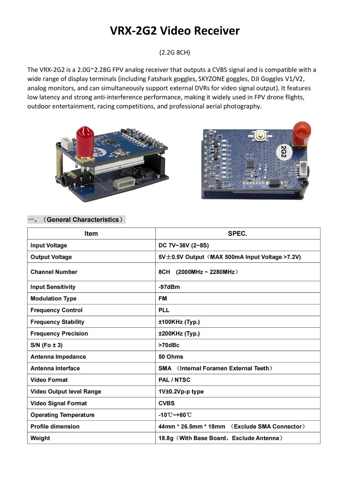 VRX-2G2 2.2G VRX 8CH 无线模拟图传 接收器