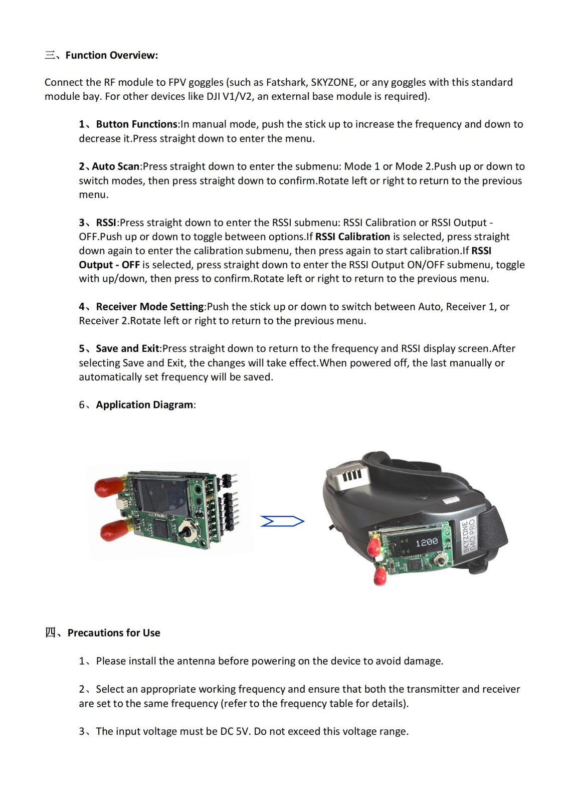 1.2G/1.3G 9CH VRX FPV图传双接收机直插FatShark Skyzone眼镜