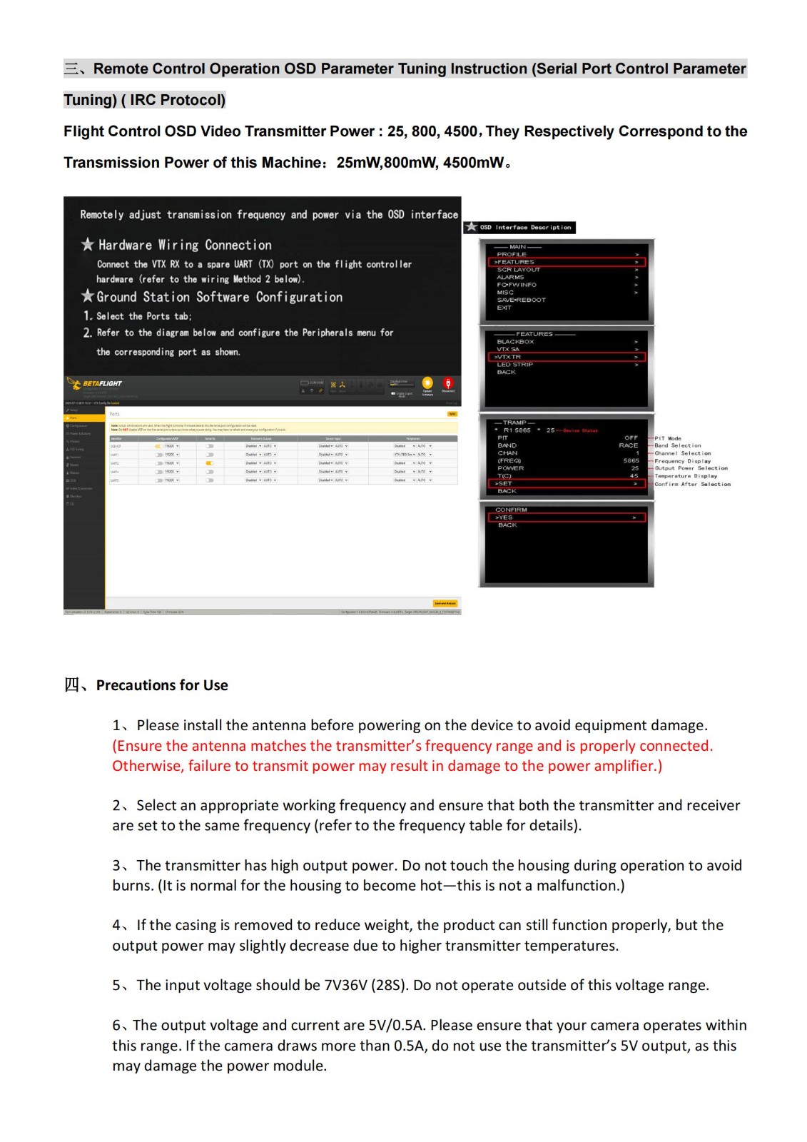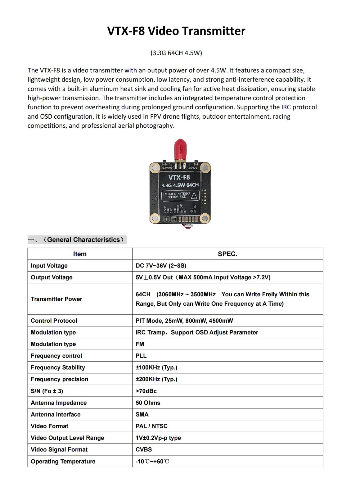 3.3G 4.5W 64CH VTX无线模拟图传 支持通过IRC协议编辑新频点
